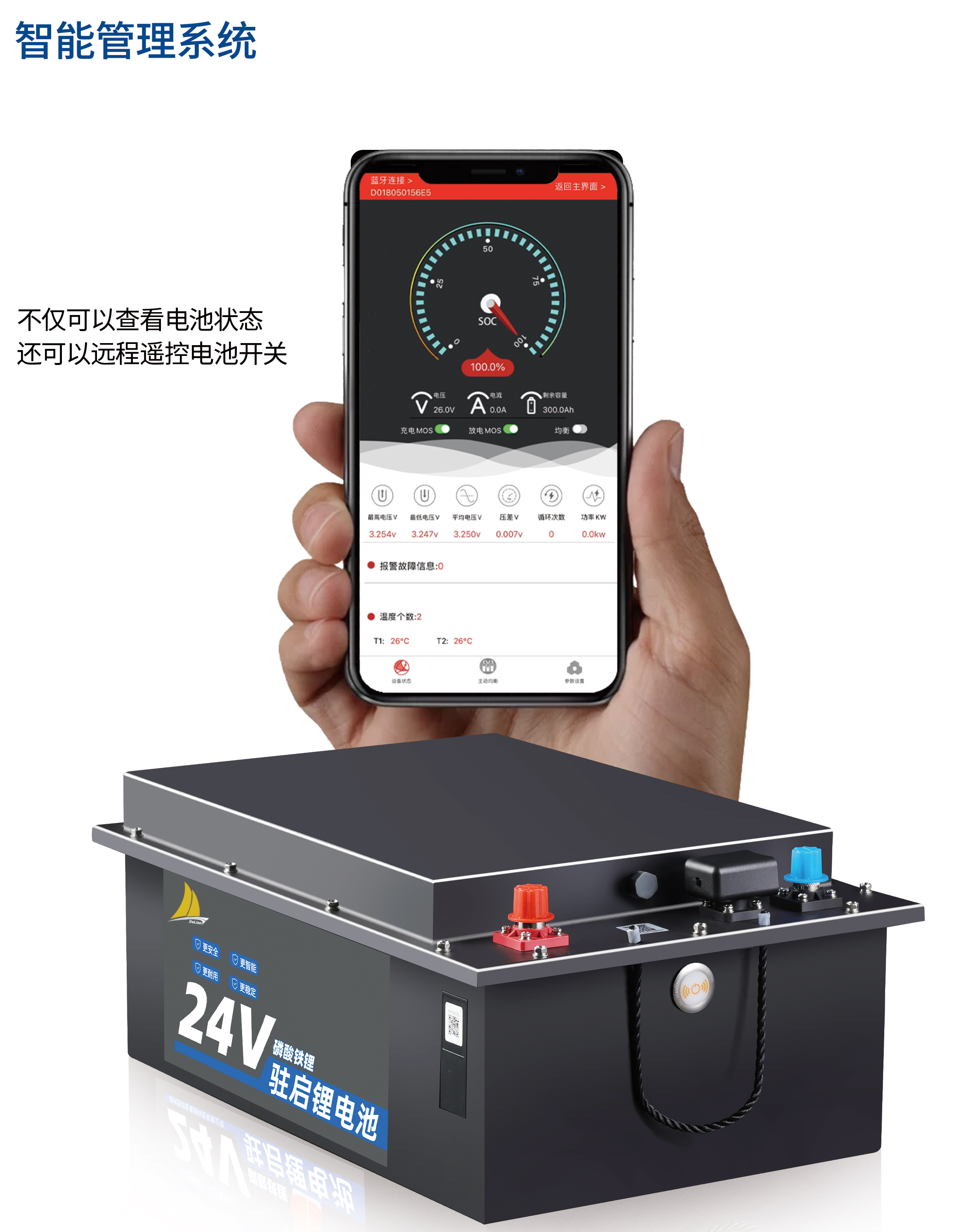 BMS 智能锁定电池容量的10%,应对突发情况,在使用电池中带空调以及其他设备时把电放完时,不用担心启动不了车子,点击电池强制启动按钮电池会有60 秒钟的时间可以启动。